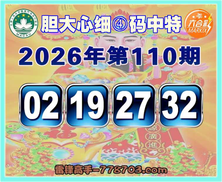 110期:〖胆大心细〗 ④码中特【02.19.27.32】开:30