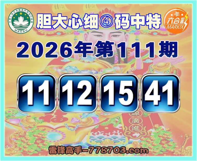 111期:〖胆大心细〗 ④码中特【11.12.15.41】开:00准
